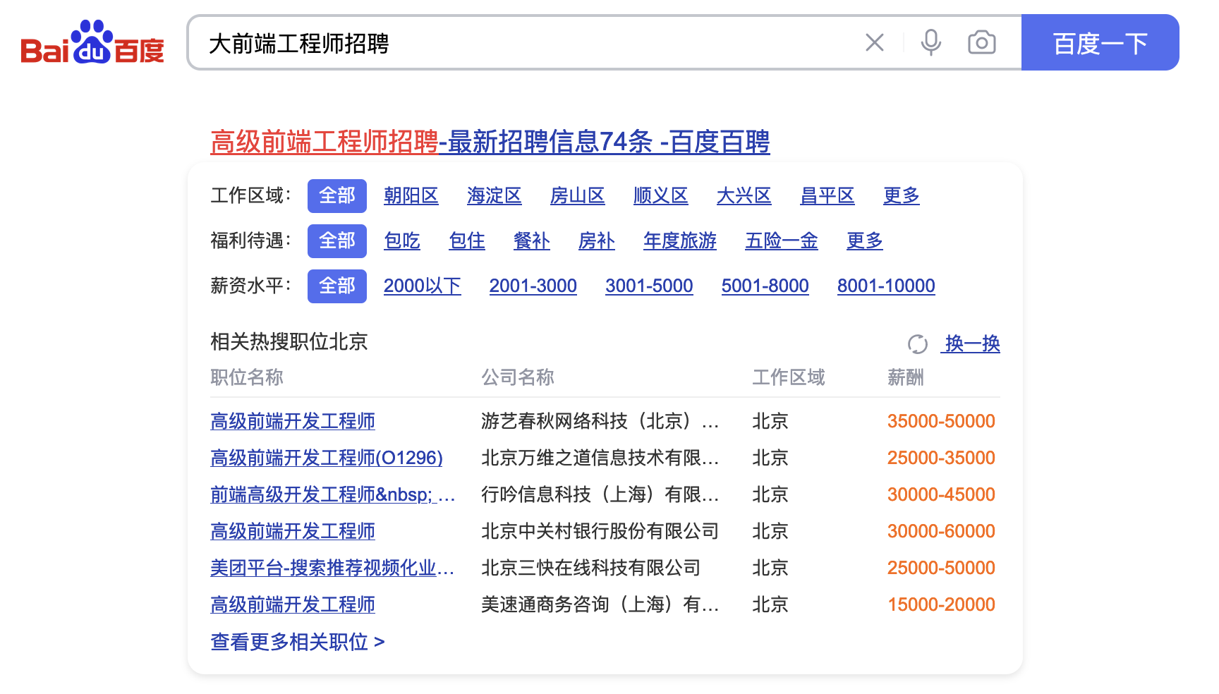 一线薪资:2W+